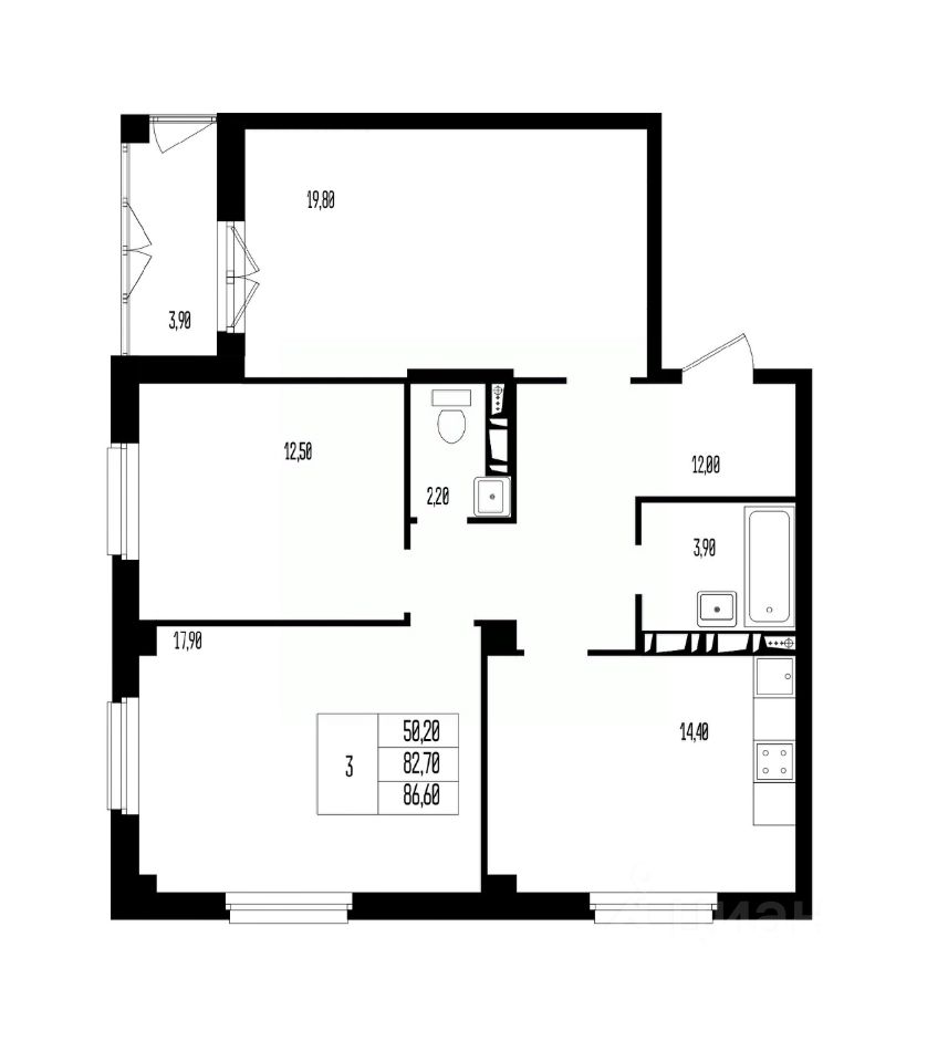 Общая площадь86,6 м2