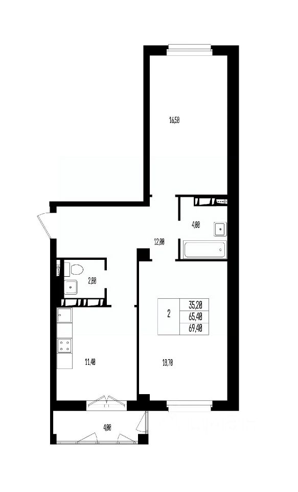 Общая площадь69,4 м2