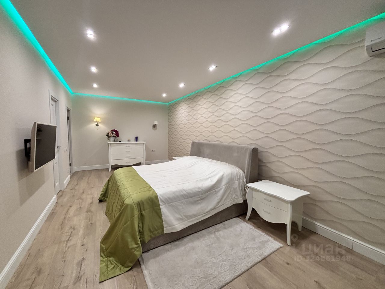 Спальня оборудована своей гардеробной, есть выход на террасу.