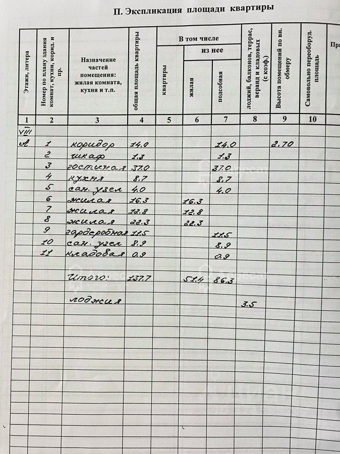 Общая площадь - 137,7 м² Жилая площадь - 62,9 м² (три спальни, в т ч мастер спальня с гардеробной и санузлом) Гардеробная с окном. При желании можно переоборудовать в дополнительную спальню. Кухня-гостиная - 45,5 м² — мечта для тех, кто любит собирать гостей. Большая застекленная лоджия с окнами во двор. Высокие потолки.
