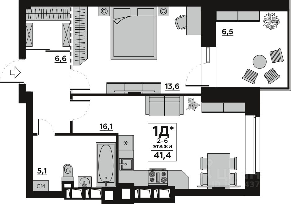 продам 1-к, Новорядская, 1185 100 000 ₽