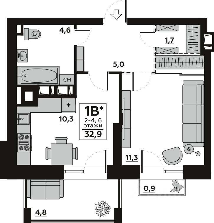 продам 1-к, Новорядская, 1184 250 000 ₽