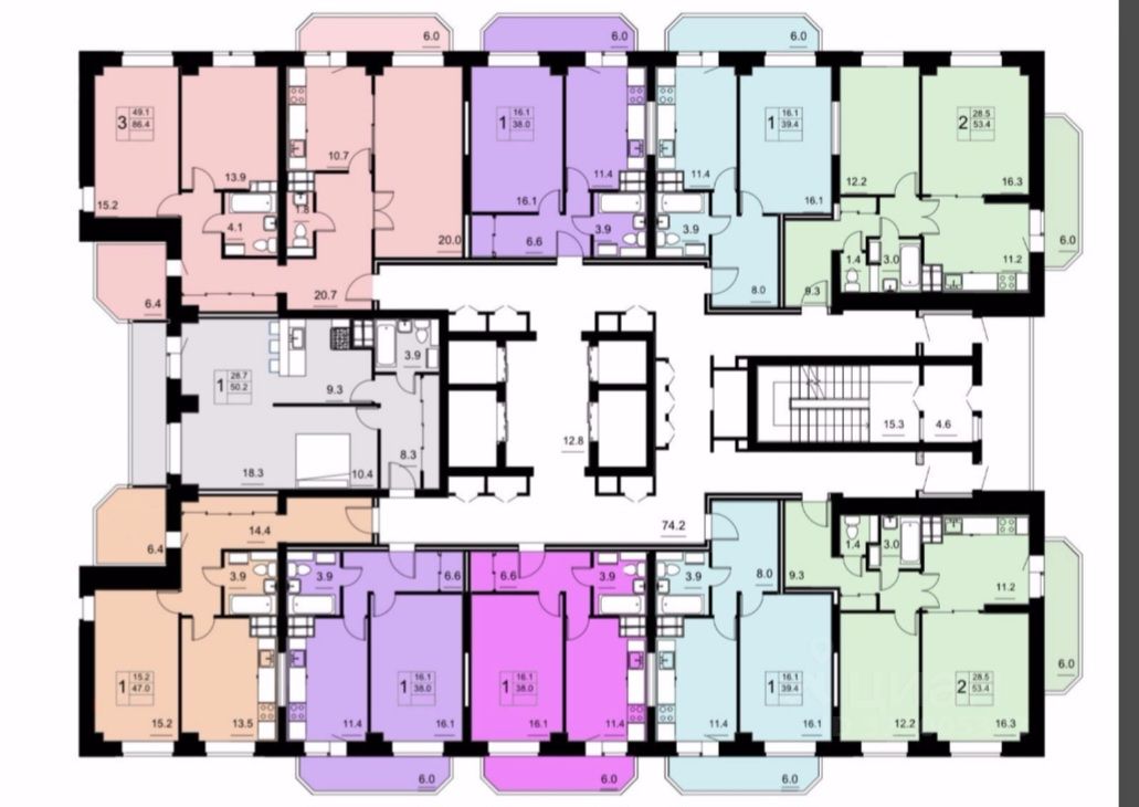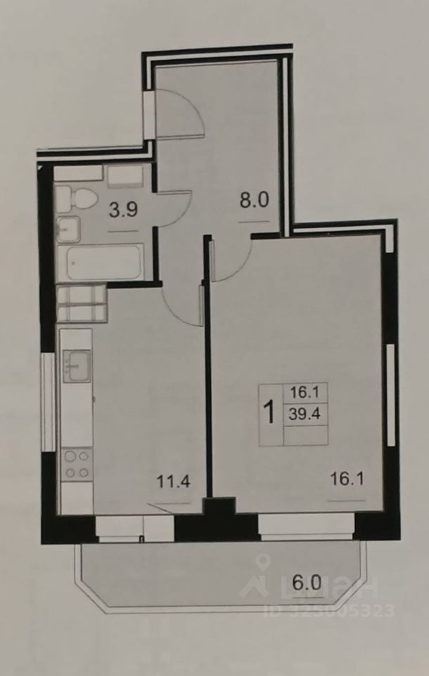 Общая площадь 45,4 кв.м (с учётом лоджии) Жилая плoщадь 16,1 кв.м Площадь кухни 11,4 кв.м