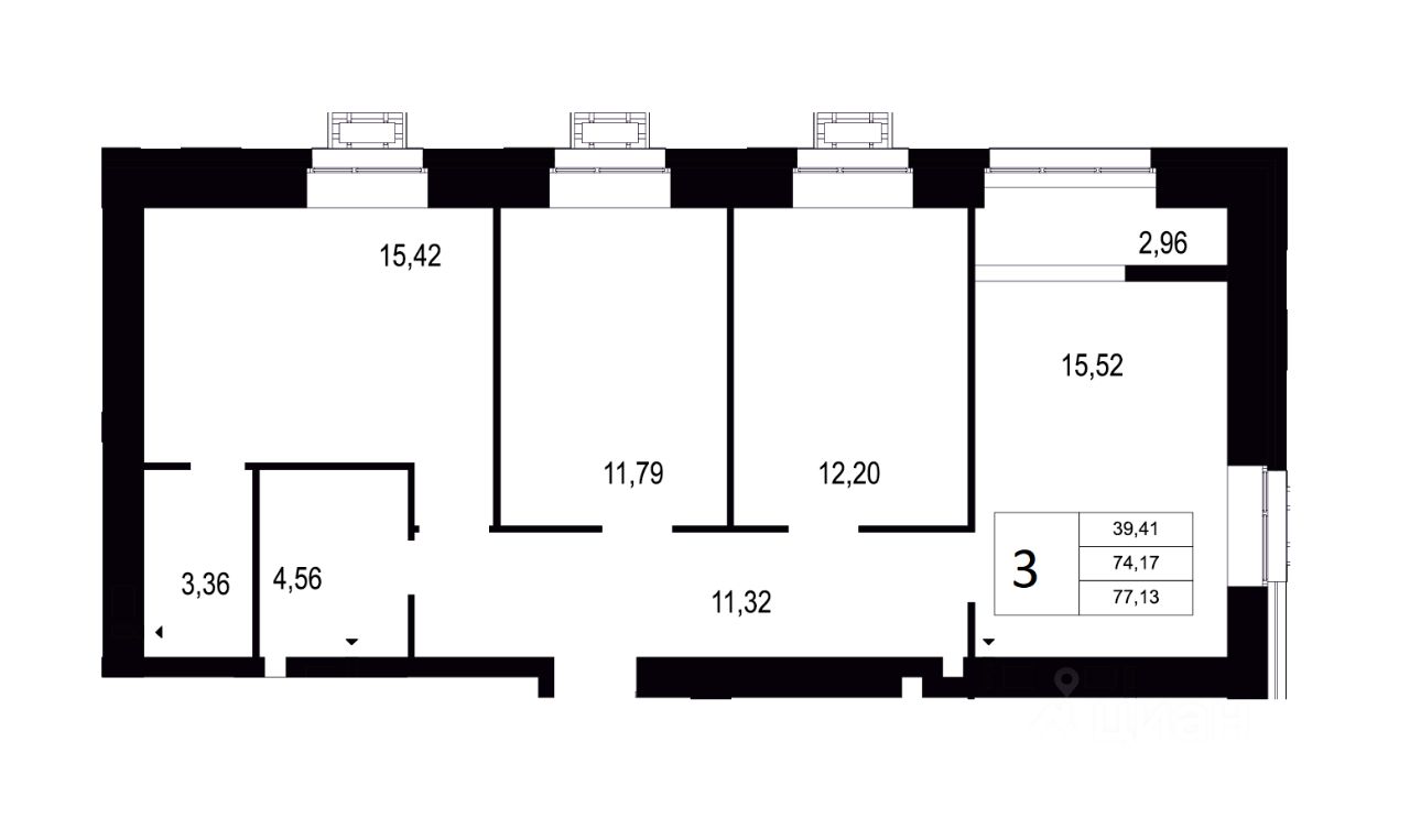 Общая площадь77,13 м2