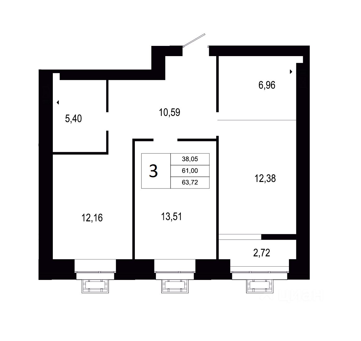 Общая площадь63,72 м2