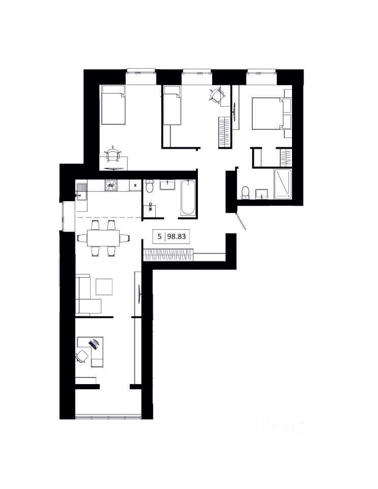 Общая площадь98,83 м2