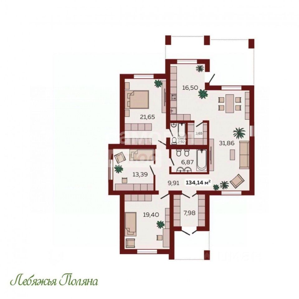 Общая площадь134 м2