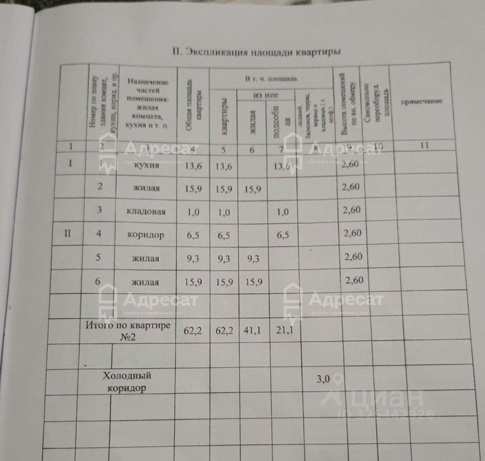 Общая площадь - 62,2 кв.м
