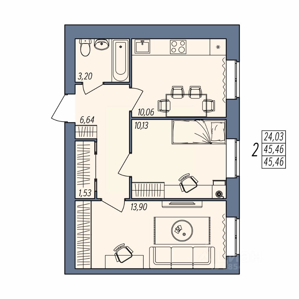 Общая площадь45,46 м2