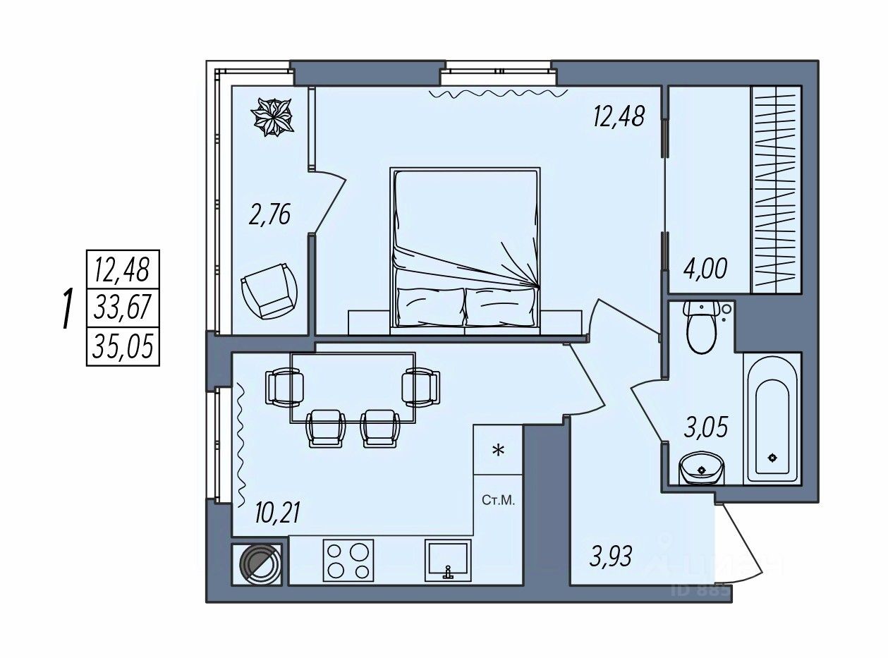 Общая площадь35,05 м2