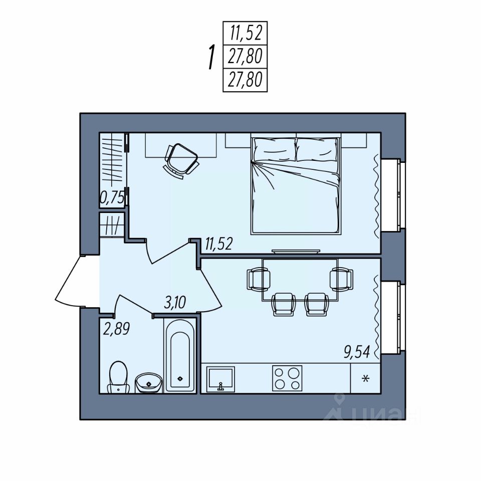 Общая площадь27,8 м2