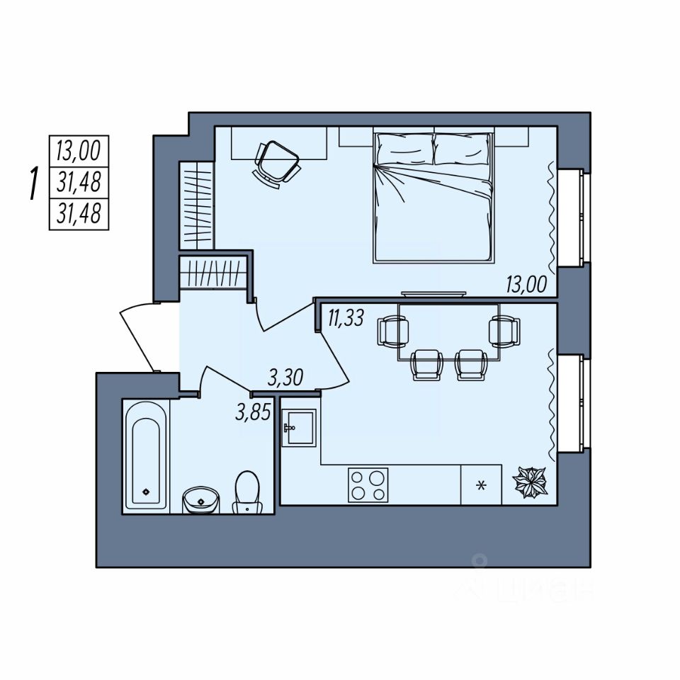 Общая площадь31,48 м2