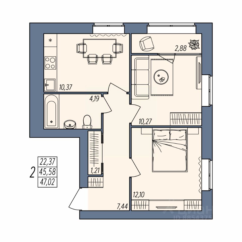 Общая площадь47,02 м2