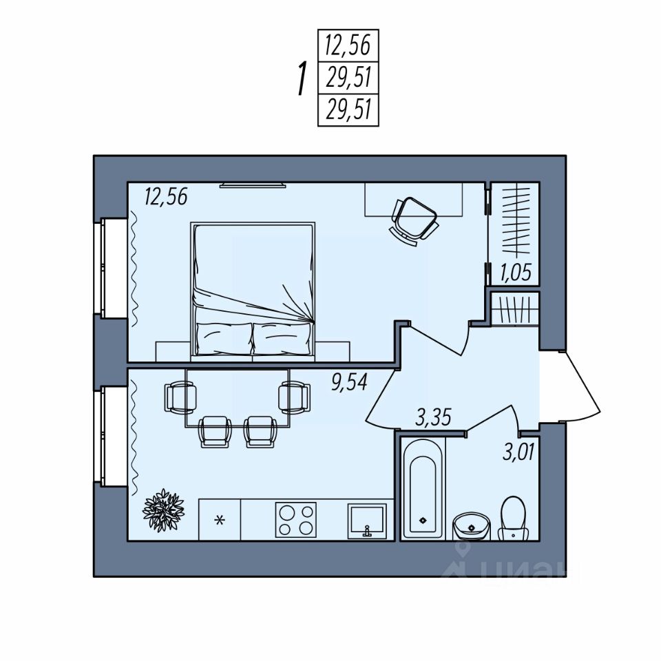 Общая площадь29,51 м2