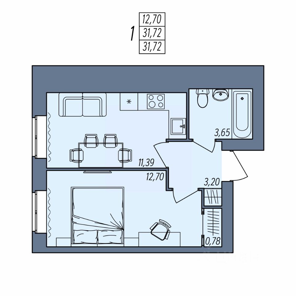 Общая площадь31,72 м2