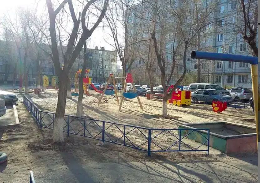 Дом удачно расположен внутри квартала, хороший ухоженный двор с детскими площадками.