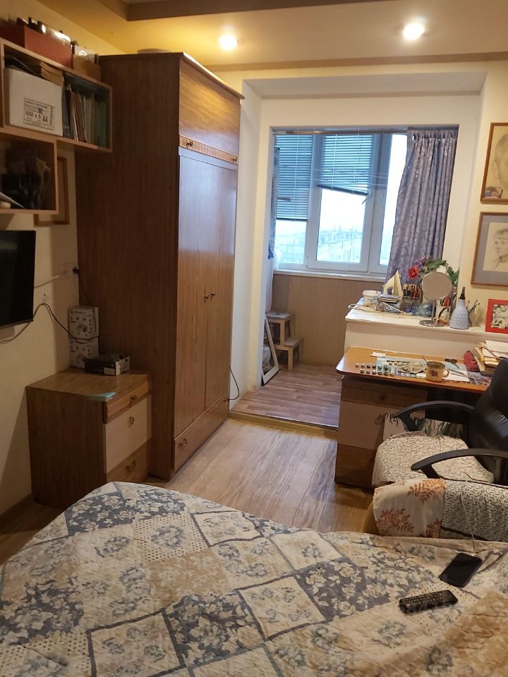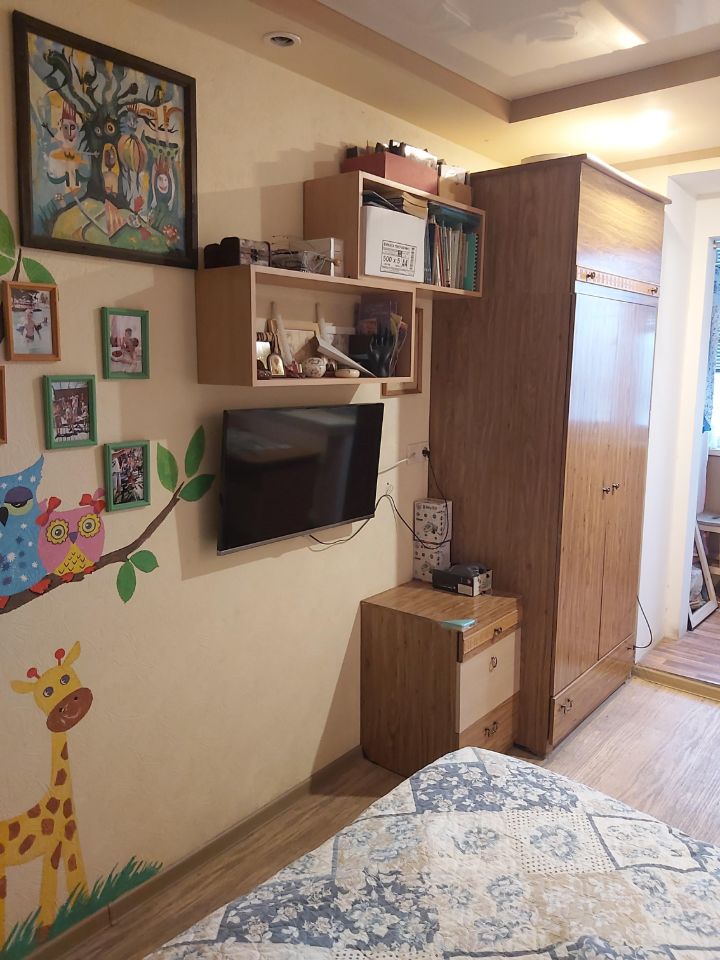 Кухня просторная, оборудована всем необходимым, включая холодильник .В комнате установлен кондиционер, обеспечивающий комфортный климат в любое время года. В квартире имеются шкафы для хранения вещей.
