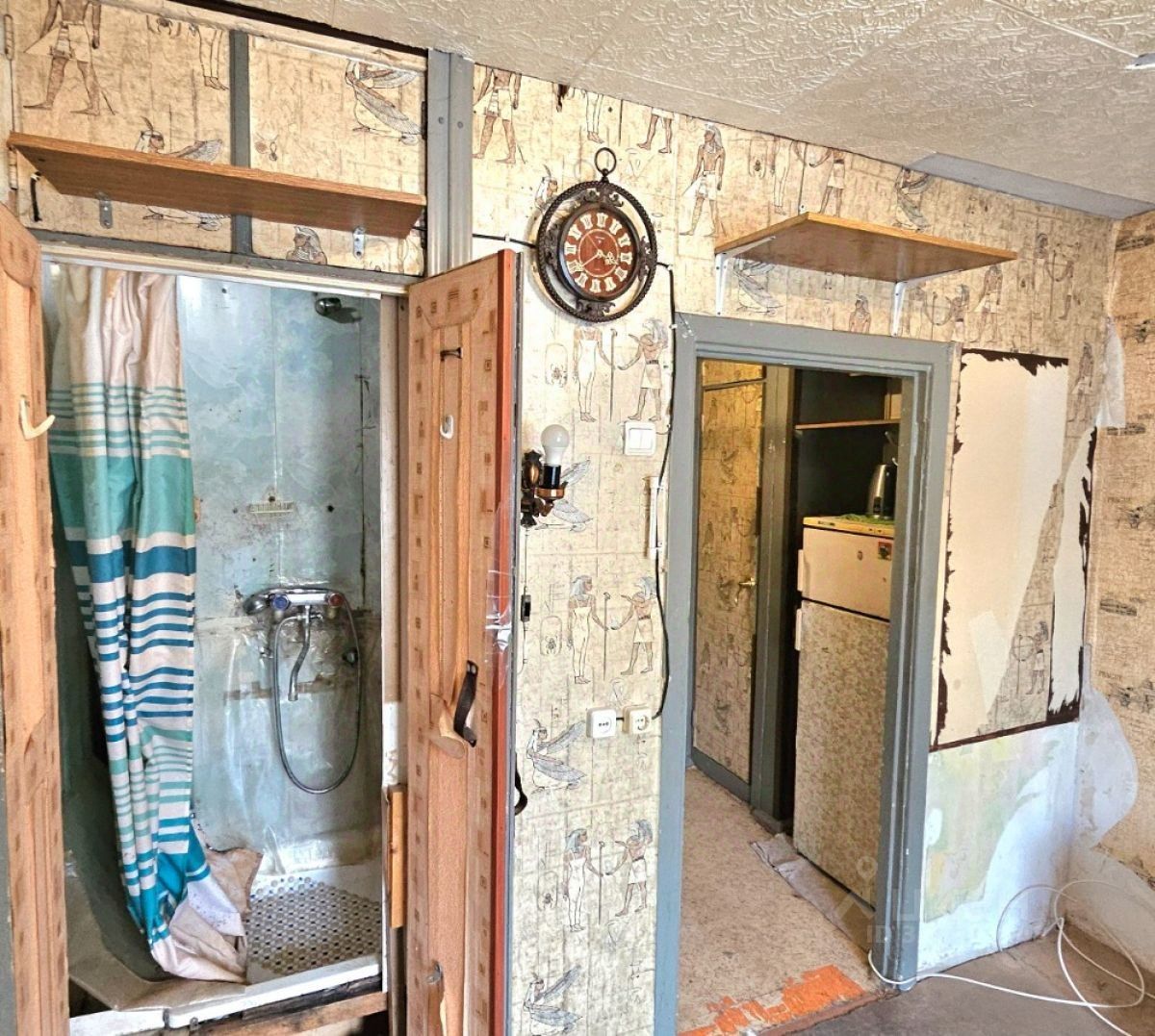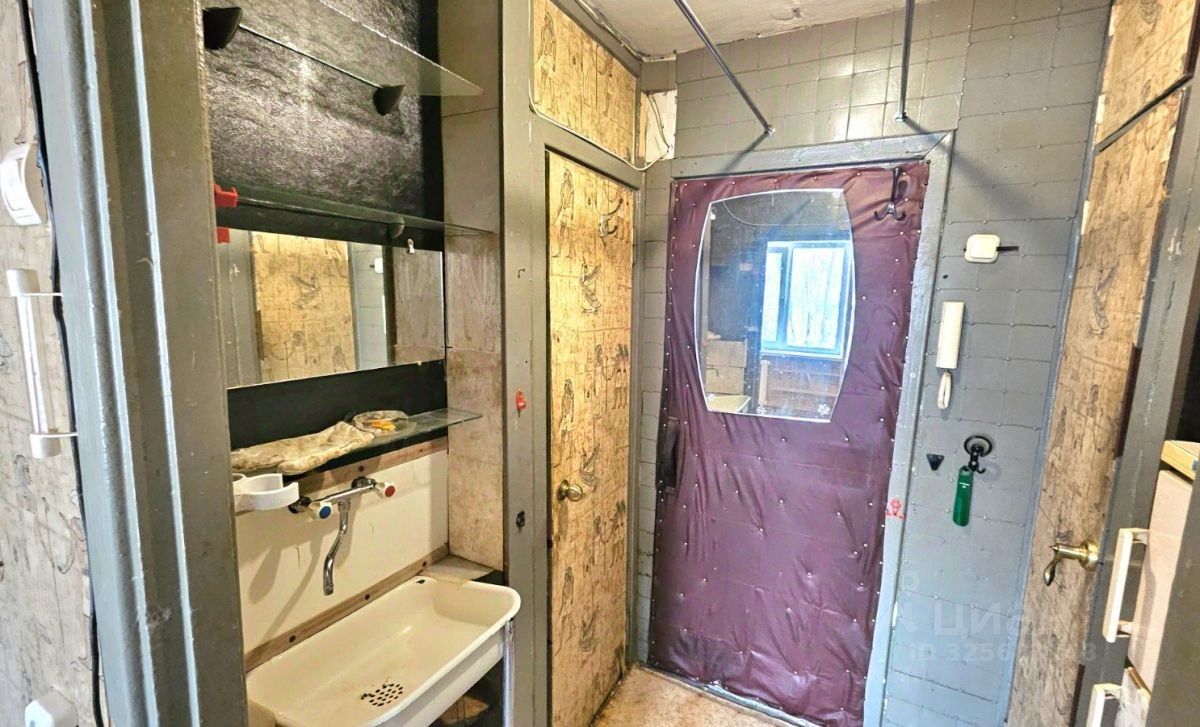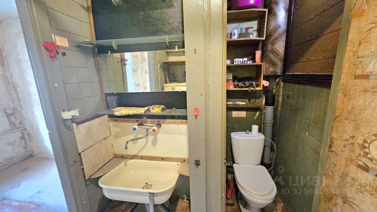 Общая площадь 12,9 кв.м , кухонное пространство, гардероб, раздельно туалетная и душевая комната, умывальник - холодная-горячая вода, жилая площадь 8,2 кв.м. Комната теплая. Требуется косметический ремонт.