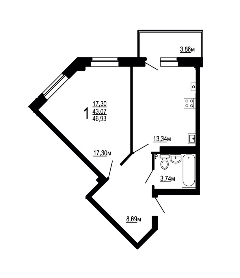 Общая площадь46,93 м2