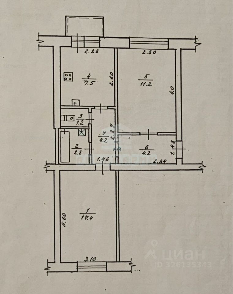 Жилая: 28,6 м.кв. комнаты 17,4 м и 11,2 м