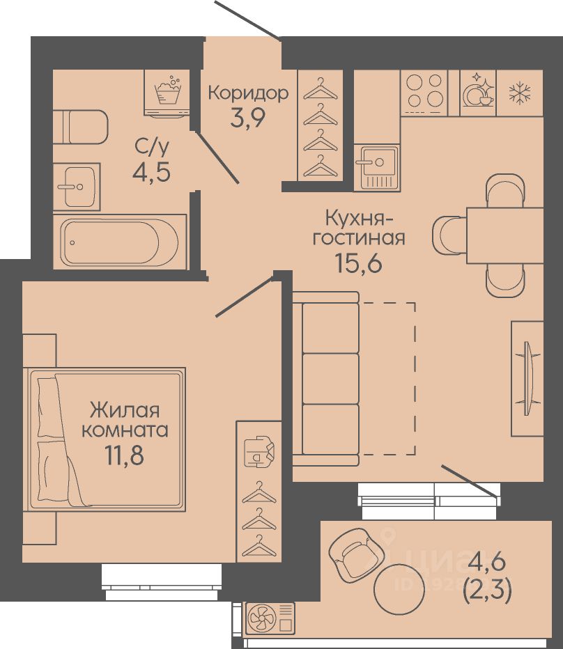Кухня15,6 м2