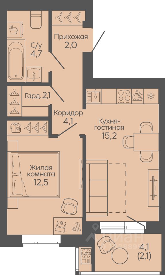 Общая площадь42,7 м2