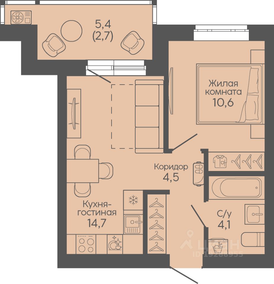 Жилая площадь10,6 м2