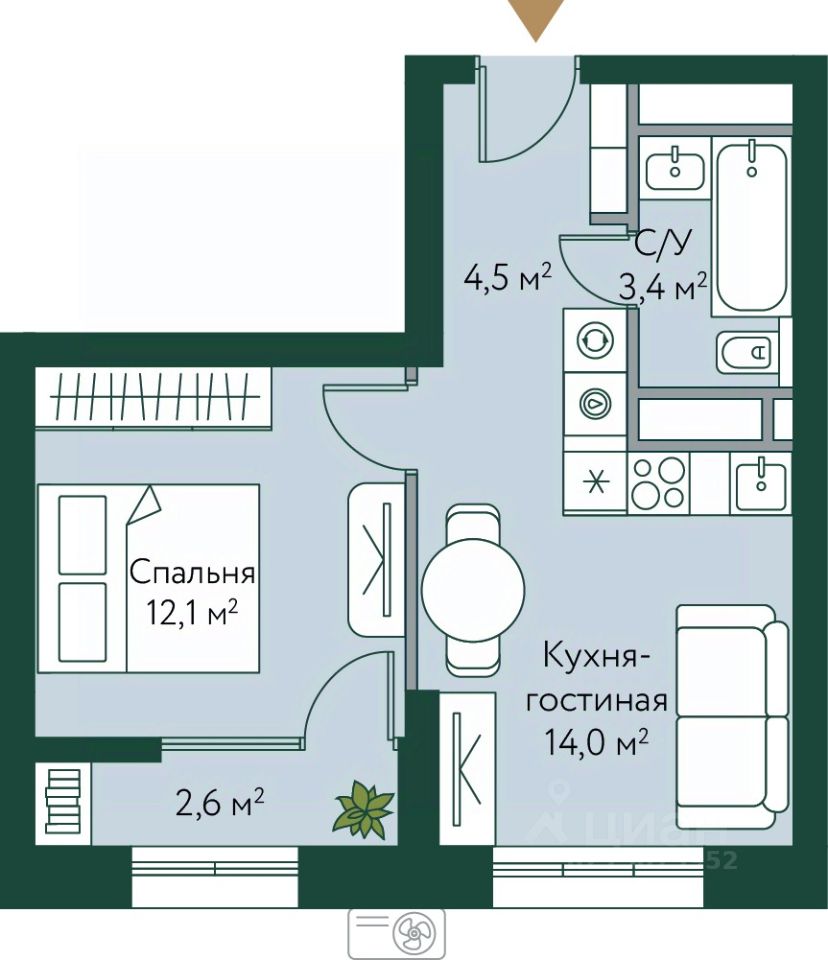 продам 1-к, Новосибирская, 74 ст14 282 200 ₽