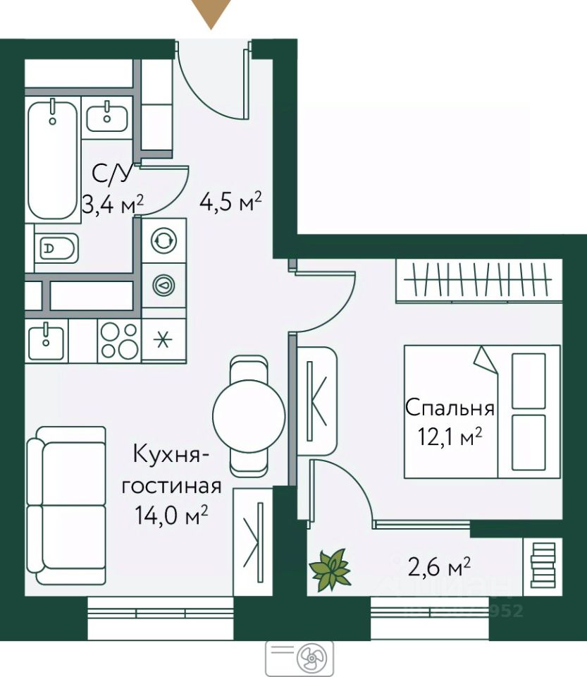 продам 1-к, Новосибирская, 74 ст14 276 350 ₽