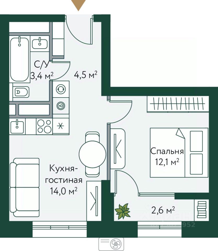продам 1-к, Новосибирская, 744 459 100 ₽