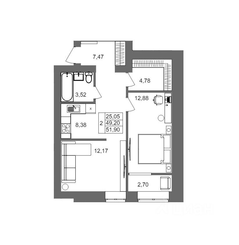 Общая площадь51,9 м2
