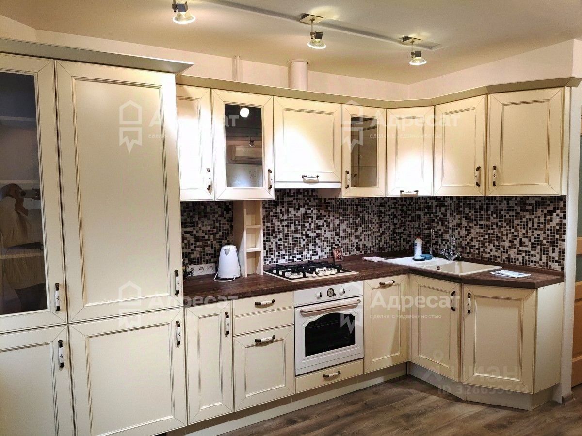 Просторная и светлая кухня-гостиная.
