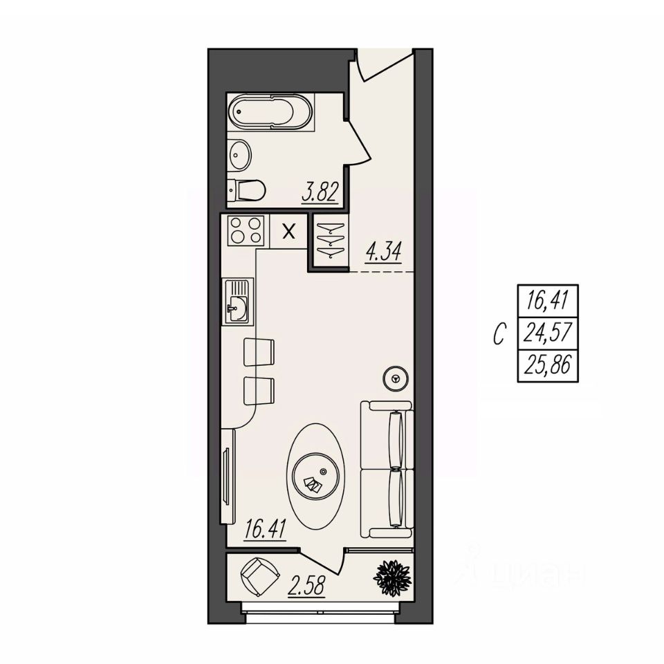 Общая площадь25,86 м2