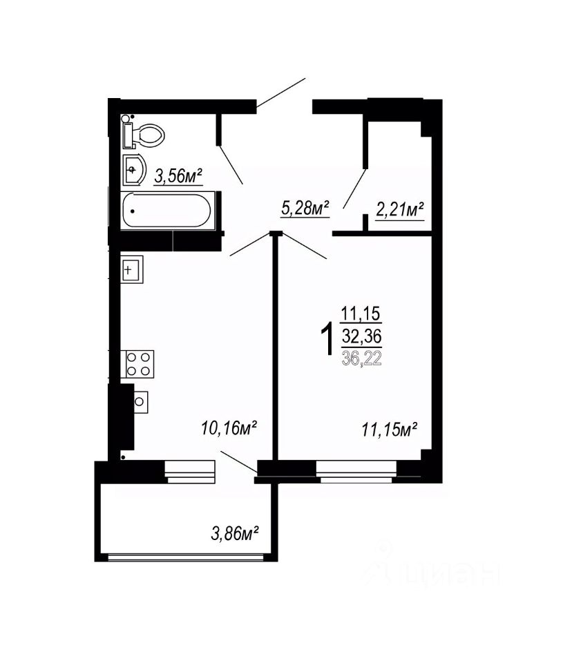 Общая площадь36,22 м2