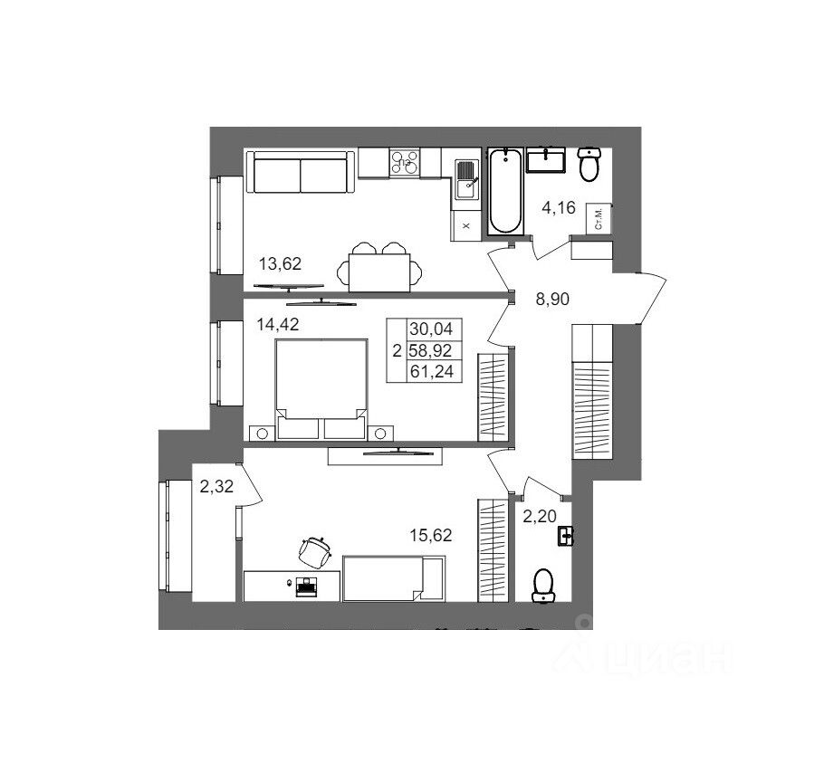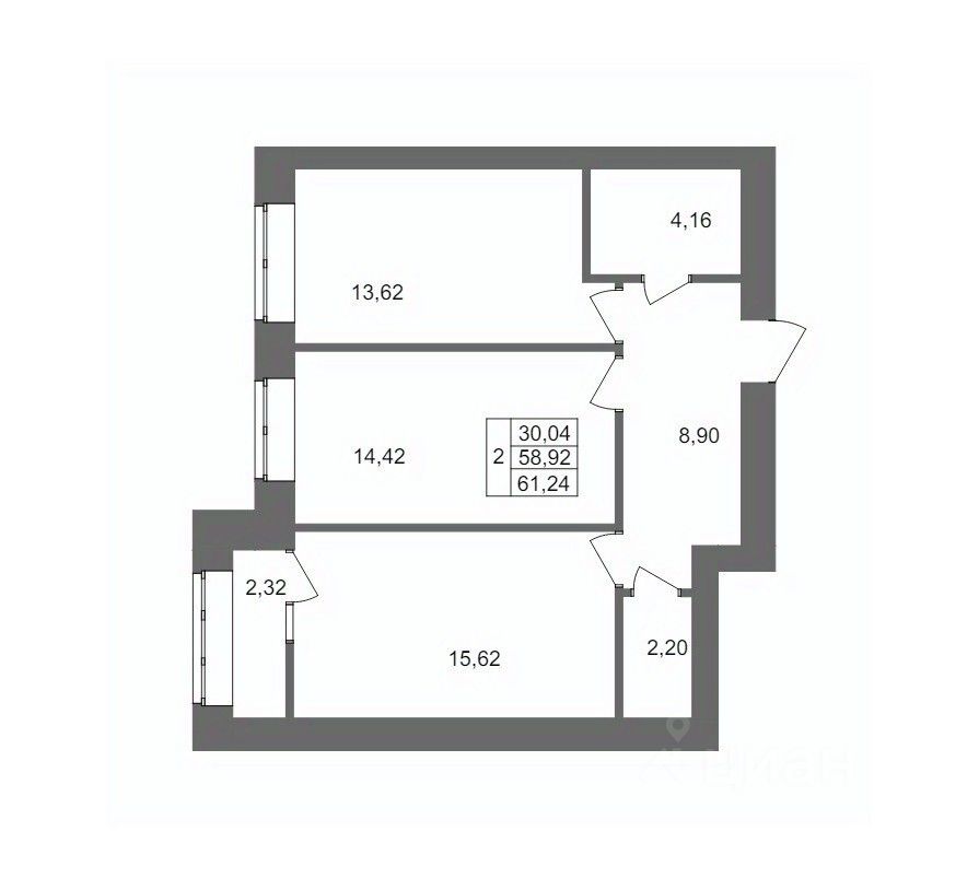 Общая площадь61,24 м2