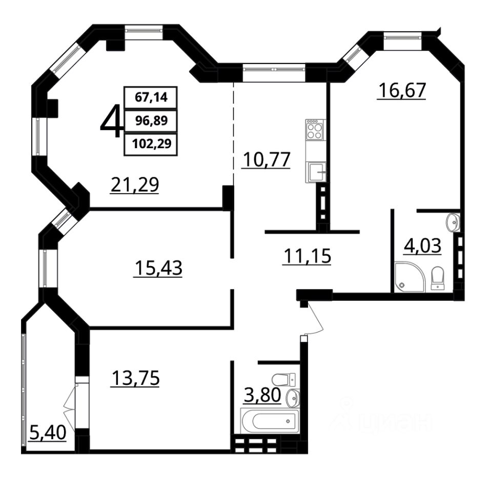 Общая площадь102,29 м2
