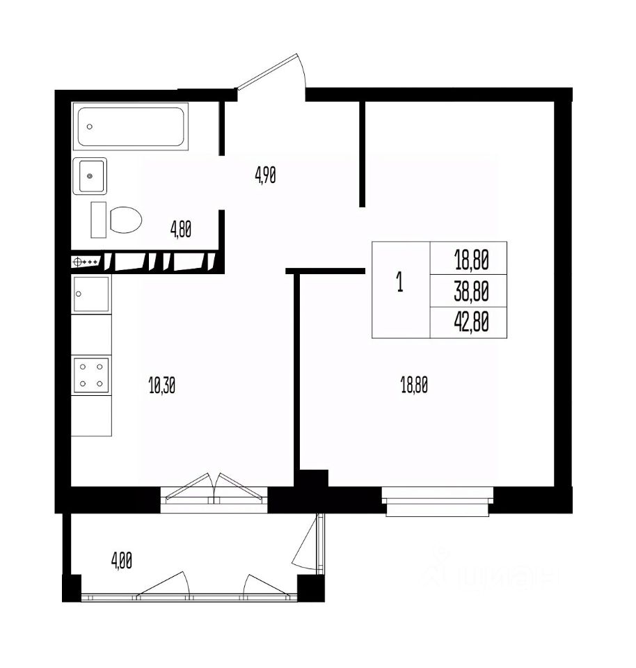 Общая площадь42,8 м2