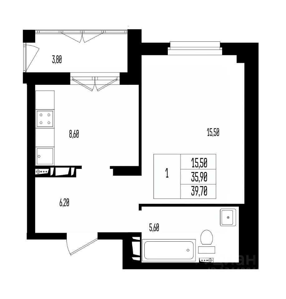 Общая площадь39,7 м2