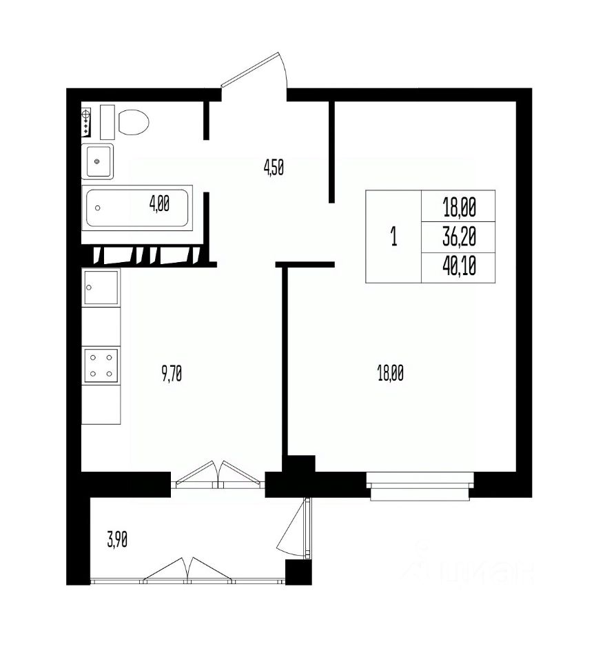 Общая площадь40,1 м2