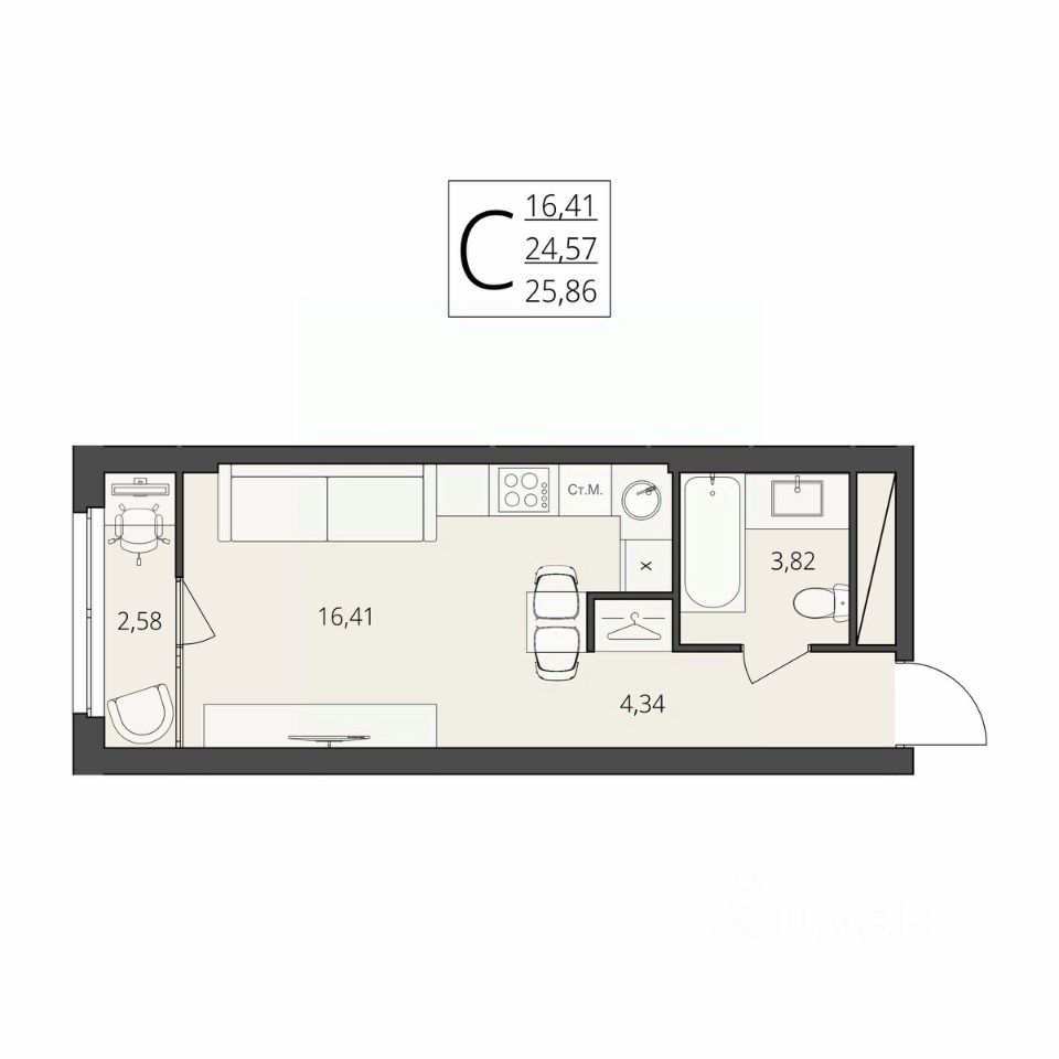 Общая площадь25,86 м2