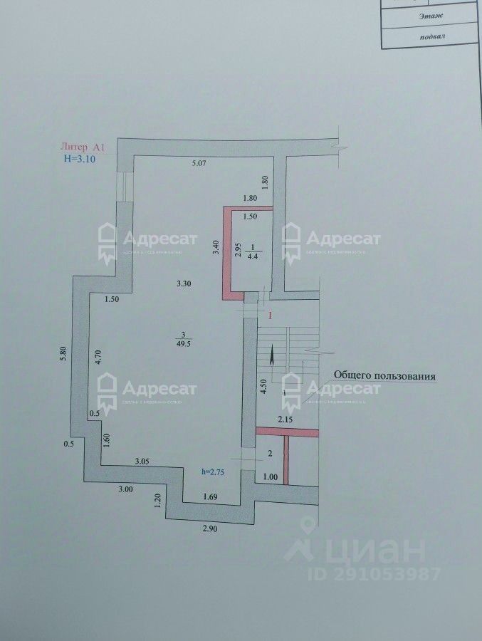 Подвал - жилая площадь 49,5 кв.м,