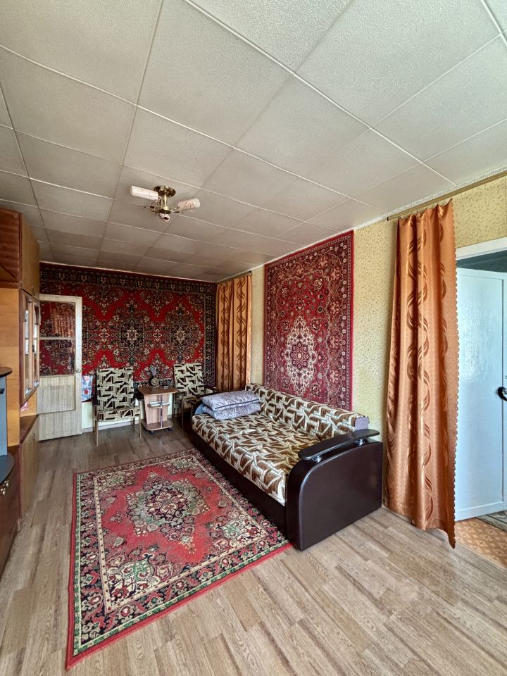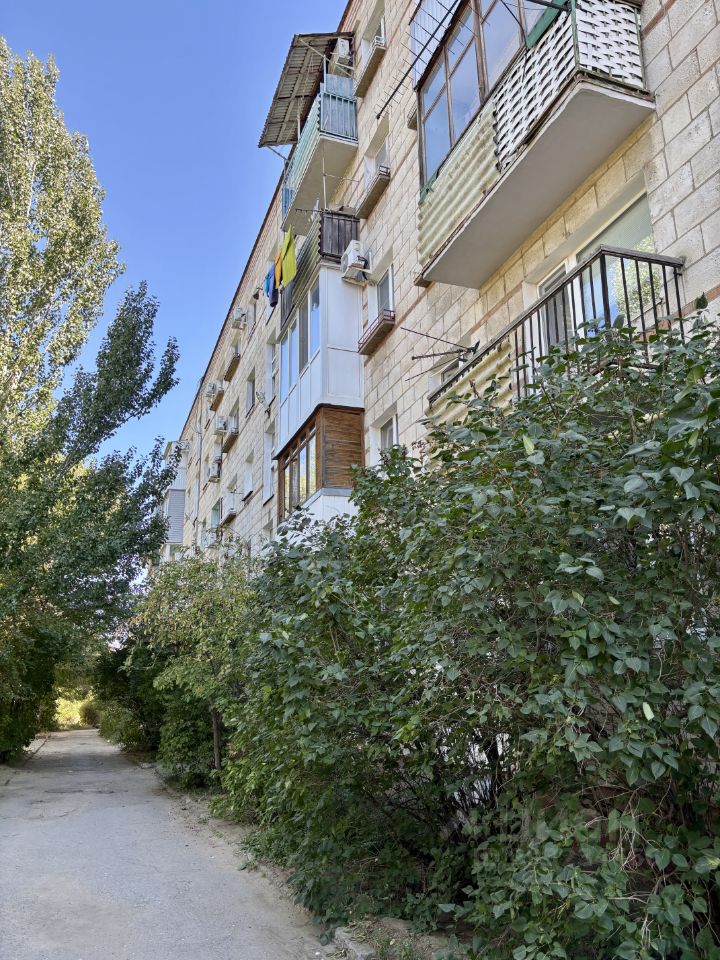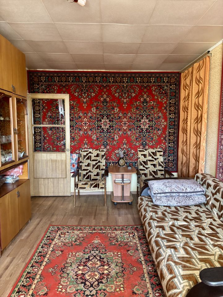 Этаж 4/5 кирпичного дома, балкон, окна смотрят во двор. Комнаты смежные, санузел совмещен, просторный коридор, вместительная кладовка.